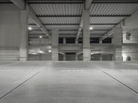 This stock photo depicts an empty parking garage in the city of Berlin, Germany. The concrete street and modern architecture give it a distinct urban design. The dark setting adds to the atmosphere, making it a perfect representation of a night scene. There are no cars inside the building, leaving the open space for viewers to appreciate the architectural features and the straight road ahead. The empty tires on the floor add an interesting element to the composition, creating a sense of abandonment.