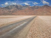 Empty Road Through Rock Gravel in California