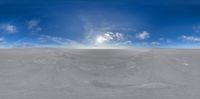 An expansive view of salt flats under a cloudy sky, creating an endless open space. This desert landscape features a vast salt lake, emphasizing the skydome effect of the environment.