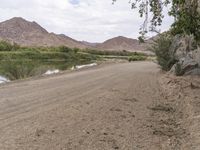 This stunning stock photo features an endless road surrounded by the breathtaking landscape of South Africa. The road, made of asphalt, cuts through the sandy desert and leads towards the distant mountains. The sandy street is lined with vegetation, grass, and trees, highlighting the natural beauty of this highland region. In the backdrop, you can see a river flowing with clear water, adding to the serenity of the scene. The sky is filled with fluffy clouds, creating a picturesque view. This image captures the essence of the African wilderness, perfect for illustrating the concept of a never-ending journey or exploration.