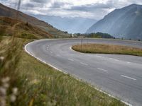 An empty road in rural Austria, curving through the picturesque mountain landscape of Europe. White arrows guide the way into the majestic mountains. A beautiful day with clear skies and fluffy clouds.