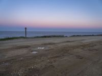 A serene coastal landscape in Portugal at dawn. The clear sky reflects on the calm ocean waters. A road winds along the sandy beach, surrounded by nature. Europe's breathtaking water resources.