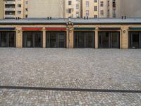 European Architecture: Beige Brick Walls and Cobblestone Courtyard
