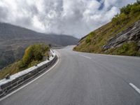 A straight road in Austria cuts through the breathtaking European landscape. Asphalt glistens under the clear sky. Armco barriers and guard rails protect drivers on this mountainous route.