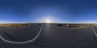 there are cars traveling on the road in this 360 - panoramic view of a distant countryside