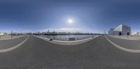 A modern office building in Bremen, Germany. The grey facade and symmetrical design create a sleek and stylish look. The clear sky and city skyline in the background add to the urban atmosphere.
