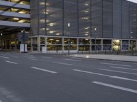 A quiet night in Berlin, Germany. The modern architecture of the buildings creates a striking urban landscape. The empty street, lined with office buildings, is illuminated by artificial light. A city that never sleeps.