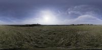 Sunny day in Brandenburg, Germany. Lush green grass covers the open park landscape. Clouds dot the blue sky over rural hills and valleys, creating a serene rural scene.