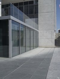 A modern architecture marvel in the heart of Berlin, Germany. The glass-enclosed building with sleek lines and a glass wall stands out against the backdrop of the concrete building. The urban design and structural elements create a stunning visual. A perfect representation of city life in Europe.