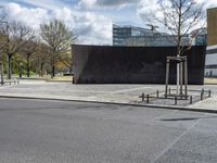 A view of Berlin's modern architecture in a residential area. The cityscape showcases a blend of low-rise buildings and tall facades. Clear skies offer a vibrant backdrop to the urban design and vibrant city life of Germany's capital.