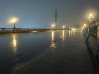 Gloomy evening in Los Angeles, California. Street lights reflect off wet roads, creating a dark and moody cityscape. The grey sky adds to the gloom, contrasting with the vibrant lights of skyscrapers and the city skyline.