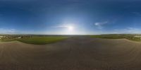 a 360 - ball lens view of a small dirt track in the countryside of california
