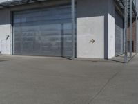 This is an image of a modern architecture building in Germany. The facade of the building is made of composite materials, with large windows and rectangular shapes. The building is surrounded by an open space, with asphalt roads and grey warehouse buildings in the background. The courtyard is filled with artwork and urban fixtures. The image represents the modern urban landscape of Germany, with a blend of art, architecture, and open spaces. This photo captures a bright and sunny day in Europe.