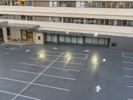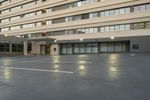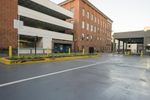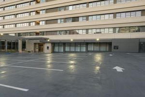 High-Rise Building in a Large Parking Lot with Open Space
