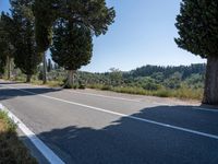 This is a captivating image of a rural road in Tuscany, Italy. The asphalt road winds through the stunning landscape, characterized by the rugged terrain and the iconic cypress trees. The clear sky provides a beautiful backdrop to the picturesque scenery. This photo captures the natural beauty of Tuscany, a region known for its charm and tranquility. It showcases the rural charm and timeless elegance of the European countryside. It's a perfect representation of Tuscany's stunning natural beauty and peaceful atmosphere.