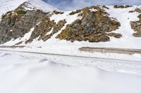 A breathtaking view of the Italian highlands, with snow-capped mountains and winding roads. The freezing temperatures create a stunning white landscape. This natural beauty of Europe is truly captivating.