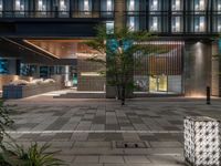 A night view of Tokyo's bustling business district. Modern architecture and artificial lights create a vibrant urban landscape. City life in Japan is on display, with office buildings, restaurants, and shops lining the streets.