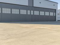 This is an image of a modern architectural building in Los Angeles, California, USA. The building features a sleek facade with wood accents and large windows. The open space in front of the building is lined with asphalt, creating a clean and modern look. In the distance, there is a factory or warehouse with a beige roof. The clear sky above provides a bright and sunny atmosphere. This photo represents urban real estate and the industrial charm of Los Angeles.