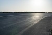 This is an image of a residential area in Los Angeles, California, USA. It is dawn and the sun is visible over the horizon, casting a warm glow on the coastal plain. The road surface is made of asphalt, leading towards the beach where sand meets the water. The image captures the natural beauty of the ocean shoreline and the infrastructure of the city with its highways and suburban neighborhoods. This scenic view provides a sense of relaxation and recreation, with the sun shining brightly. It represents a sunny day in Southern California, a perfect place to enjoy water resources and outdoor activities.