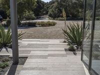 A modern residential home in Los Angeles, California. The concrete architecture blends seamlessly with the surrounding landscape. The property features a spacious courtyard and a lush garden with perennial plants. The house is nestled in a tranquil suburban setting, providing a perfect retreat from the bustling city life.