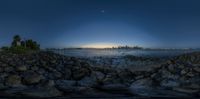 The sun rises over the Miami skyline, casting a golden glow on the city and reflecting off the calm ocean waters. The urban design of Miami Beach comes to life as the day breaks, creating a stunning contrast between the dark night and the vibrant city.