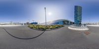 A captivating 3D rendering showcasing modern architecture in Holland. The reflection of a building is captured in a fish-eye lens, creating a mesmerizing effect. The vibrant city life and urban design of Holland are beautifully depicted.