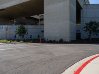 Experience the modern architecture of a Los Angeles campus, framed by suburban streets and asphalt roads under a clear California sky. A glimpse into the architectural landscape of the USA.