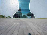 A modern architectural masterpiece in Taiwan's bustling city streets. This blue building with numerous windows and small polka dots stands tall in the urban landscape. Its unique design adds to the vibrant city life of Taichung and Taipei.