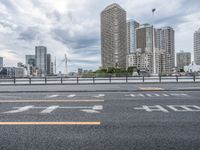 Modern architecture in Tokyo cityscape with a grey sky. Dawn breaks over the urban skyline, featuring a bridge with an Armco barrier. A dynamic view of Japan's bustling capital.