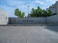 A view of the modern architecture in Zaragoza, Spain. The concrete walls and open spaces create a unique urban design. The city plaza is surrounded by buildings, blending architecture with the European city life.