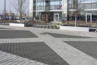This stock photo features a stunning example of modern architecture in Toronto, Ontario, Canada. The image showcases a contemporary office building with a sleek design. The usage of composite materials and concrete creates a stunning contrast against the urban landscape. The open plaza in front of the building is filled with grey cobblestone and offers a spacious and inviting atmosphere. The image also captures the infrastructure and signage, including traffic signs and a traffic light, highlighting the buzzing city life in the business district. The Canadian flag can be seen waving proudly in the breeze, adding a touch of patriotism to the scene. The photograph is taken during a bright and sunny day, casting beautiful shadows on the ground and showcasing the vibrant logo of the company. The image is perfect for illustrating urban design, modern architecture, and the bustling city life of Toronto.