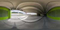 a fisheye lens image of a subway stop at the subway station in tokyo, japan