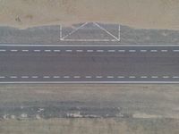 a bird's eye view of an empty city road next to a sand mountain