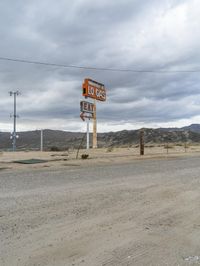 Old gas station in the desert area of Nevada, near the city of Las Vegas. Motel signs and a large red fire hydrant add character to the urban landscape. Desert plain stretches to the distant mountain horizon.