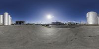 Industrial manufacturing plant in New Zealand on the North Island. Clear skies above the concrete and asphalt surfaces. Vegetation surrounding the factory contrasts with the open space for work.