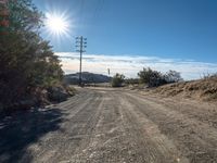 A view from Mulholland Drive in Los Angeles, California. The rugged mountain landscape is bathed in sunshine with clear skies. The road stretches out straight, leading to a sunny recreational area off-road. A perfect day for nature lovers.