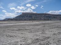 Off-road track in the USA, surrounded by the stunning desert landscape of Factory Butte, Utah. Gravel and dirt surface provide an open space for adventurous exploration. Clear skies and natural beauty abound.