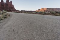 A rugged off-road track winding through the picturesque landscape of Utah. The red rock formations and sand dunes create a stunning backdrop for a road trip through the canyonlands. Clear skies overhead showcase the natural beauty of this national park.