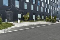 This stock photo features a black building on the corner of a bustling street in Toronto's business district. The building's facade is adorned with a painted line, giving it a modern touch. Lush trees line the side of the road, creating a pleasant atmosphere. This image perfectly captures the vibrant city life and urban design of Toronto, Canada. It is an ideal representation of a thriving metropolitan area with its mix of residential and commercial properties.