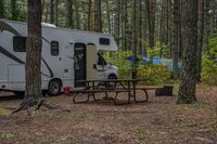 A scenic view of a rural road in Ontario, Canada. Lush green grass and tall trees line the road, creating a peaceful and natural environment. A car drives along the wet road, kicking up dirt and gravel. The landscape showcases the diverse vegetation of the area.
