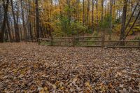 Ontario Field with Fallen Leaves, Fence, and Woods