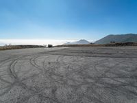 This image captures the view of the mountains on a clear and bright day. The open space is surrounded by clouds, with a truck making its way up a steep slope on the dirt and gravel surface. The mountains provide a majestic backdrop to the scene, creating a sense of solitude and adventure. This photo showcases the beauty of nature and the ruggedness of the terrain. It represents the thrill of exploring mountainous landscapes and finding peace in the solitude of the open space.