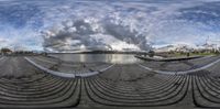 there is a fisheye view of an outdoor event venue that features seating and lake