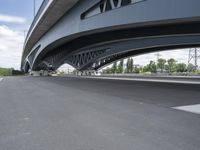 This stock photo features an overhead highway with a bridge and street on both sides of the road. The modern architecture and urban design of Hamburg, Germany create an impressive city landscape. The road is made of asphalt and concrete bridge, providing smooth infrastructure for transportation. The image captures the open space and clear sky, making it a perfect representation of a beautiful day in the city. Additionally, the presence of graffiti on the wall showcases the vibrant and artistic city life. This photo perfectly embodies the urban charm of Hamburg, a city located in Europe.