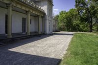 a very long paved sidewalk on a big nice day outside the mansion area at home