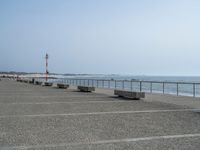 A clear sky overlooks Porto's cobblestone beach coastline. Open space next to the ocean offers a peaceful day by the water. Coastal parking lot with a view of the European surface.