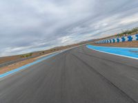 A race track in the USA with asphalt road curving through the landscape. Clear skies provide perfect racing conditions. Feel the adrenaline and speed of a race day.