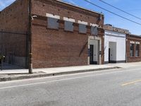 This stock photo features a vibrant red motorcycle parked outside of an old, run-down building. The motorcycle is placed on the asphalt road, with a clear sky in the background. The brick residential building, typical of the classic architecture found in Los Angeles, is located in a suburban neighborhood. This image captures the essence of city life in California, USA, showcasing the unique blend of urban design, business districts, and art districts found in Los Angeles.