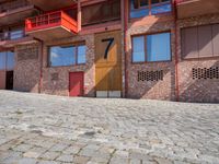 This photo showcases a charming residential area in Berlin, Germany. The brick paved area with red shutters and garage doors creates a picturesque scene. The mix of modern and traditional architecture gives the city its unique charm. The cobble stone road adds to the aesthetic appeal. The image captures the essence of urban living in Berlin, with its beautiful homes and buildings. The red brick wall and windows provide a vibrant touch to the scene. It is a perfect representation of the city's architecture and atmosphere. The photo was taken during the day, showcasing the bright and lively feel of the area. Located in Europe, Berlin is known for its thriving business and art districts, offering a mix of museums, hotels, and office buildings. This photo is a great choice for projects related to urban life, architecture, travel, and cityscapes.