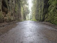 Wet Forest on a Gloomy Day: Road Asphalt 003